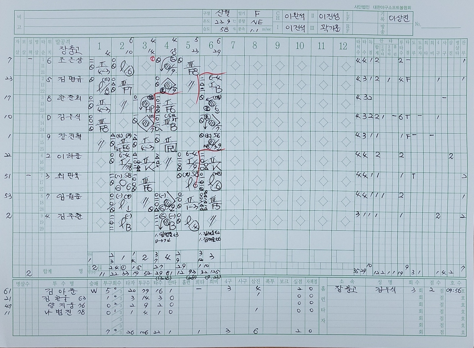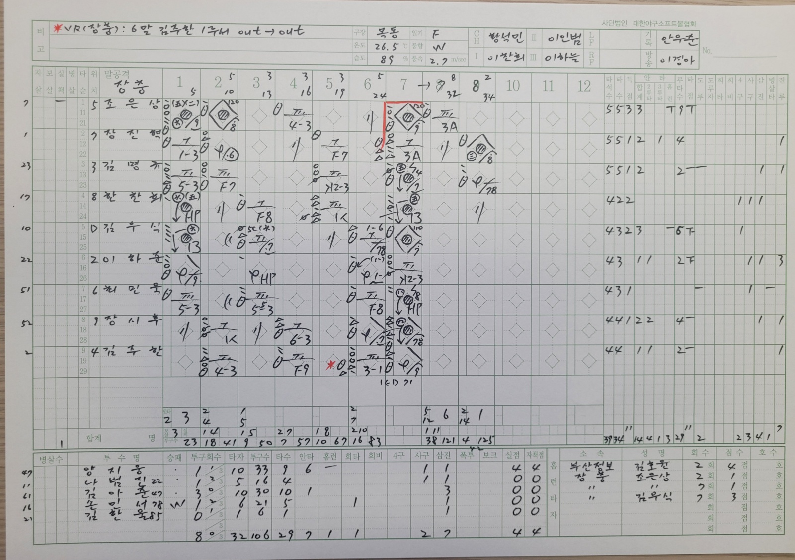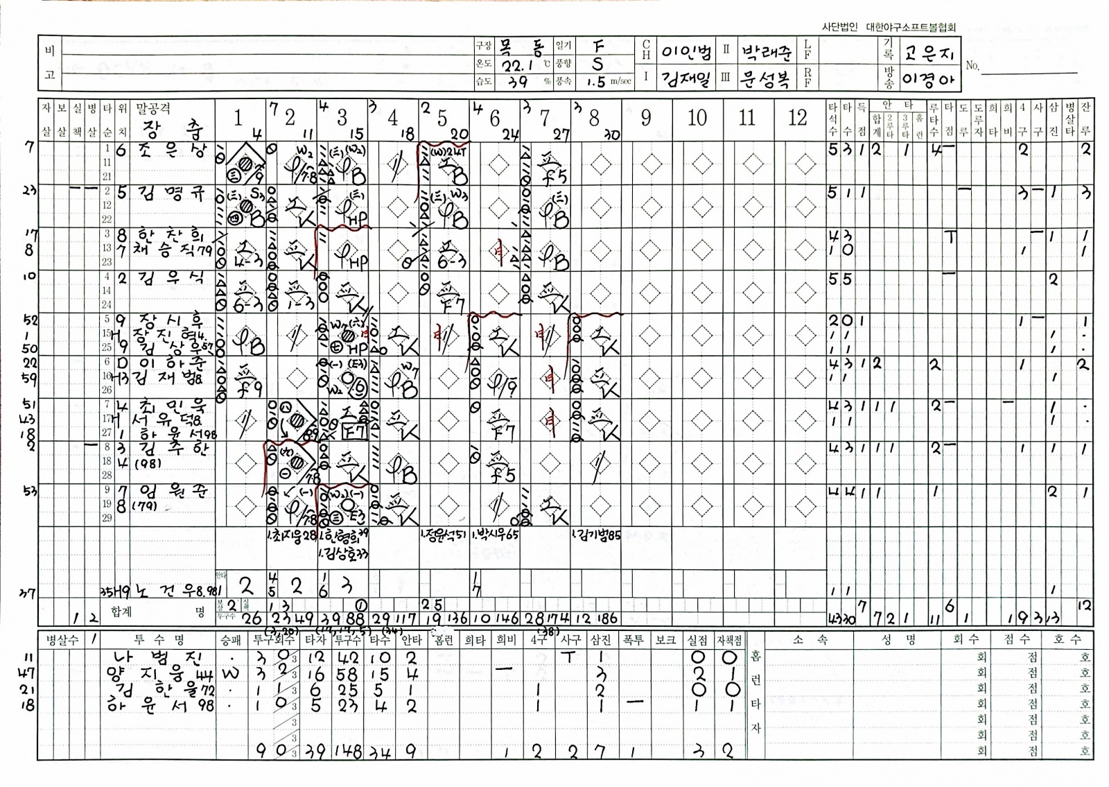 중견수 수비이닝 기록이 13이닝(주말리그후반기) 만 표기되어 있고, 봉황대기 중견수 16이닝이 기록이 안되어있어 문의드립니다. 장충고등학교 한찬희입니다.