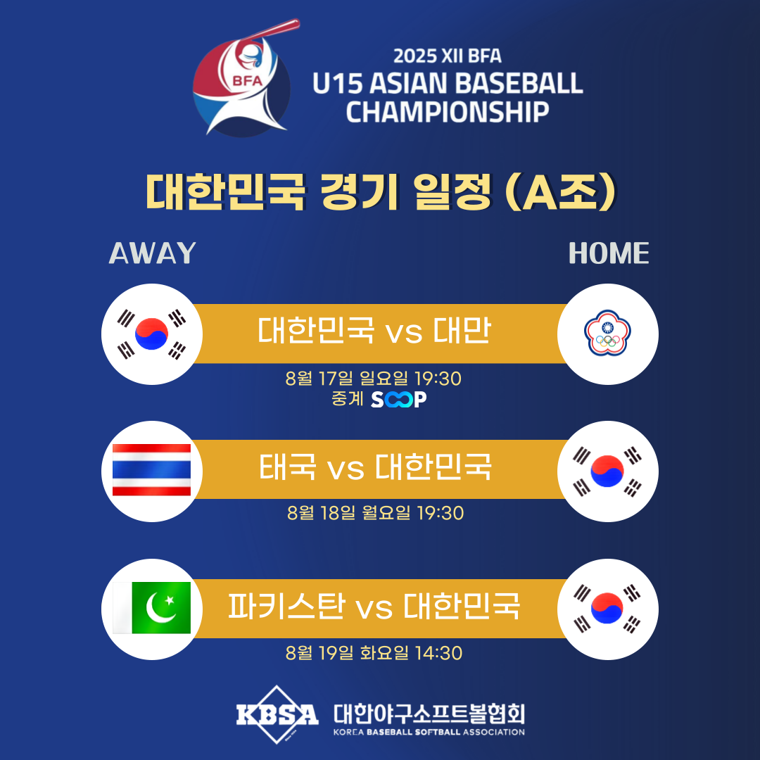 제12회 아시아유소년야구대회(15세 이하) 예선 일정 안내