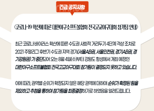 코로나-19 확산에 따른 대한야구소프트볼협회 전국고교야구대회 참가팀 안내 <21일 14:00 추첨>