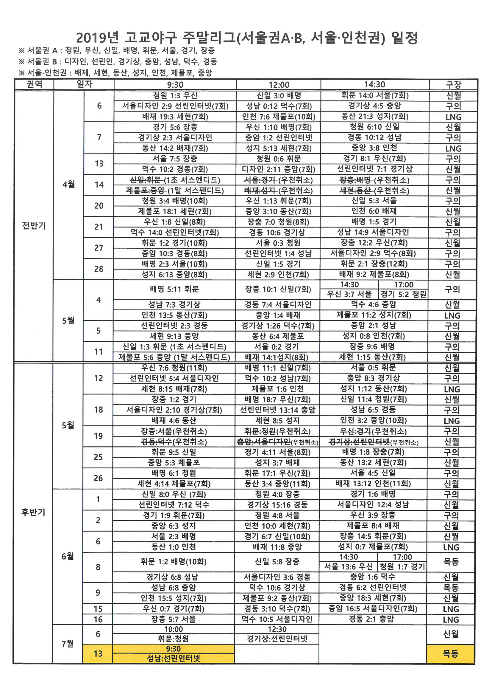 * 서울권 B, 경상권AB 주말리그 후반기 우천취소 경기를 재편성하였습니다.