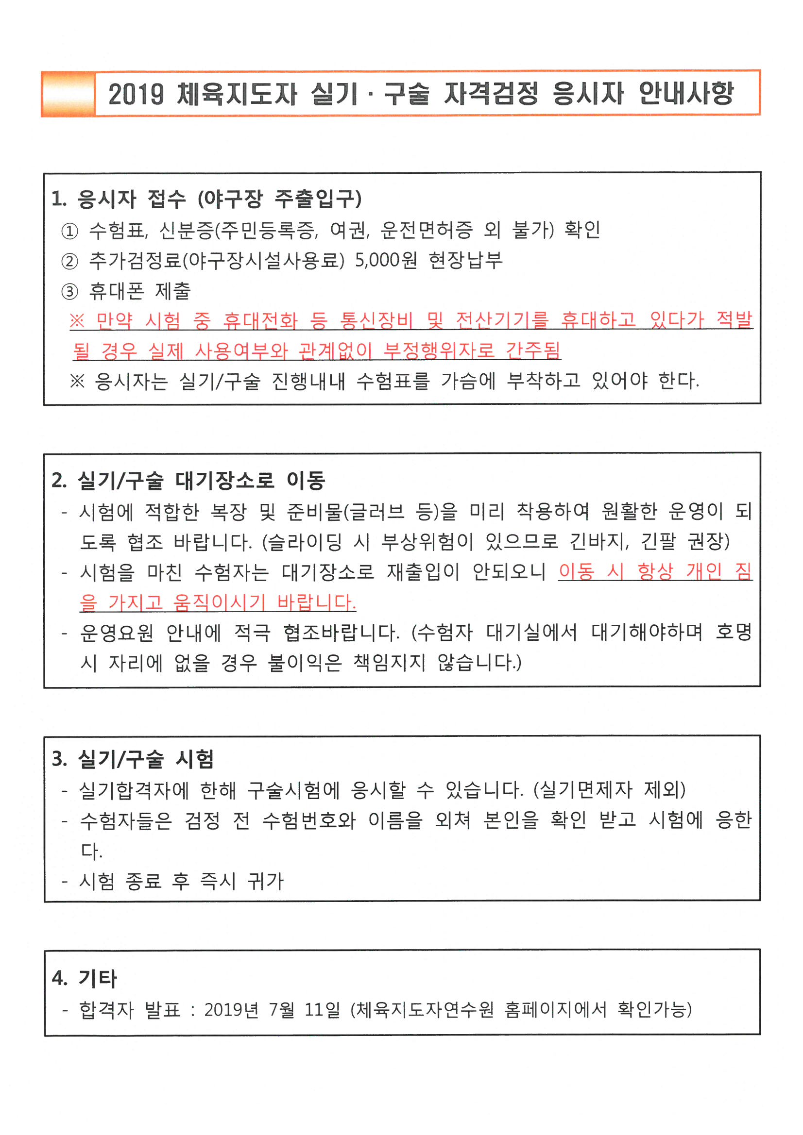2019 체육지도자 실기·구술 자격검정 응시자 안내사항
