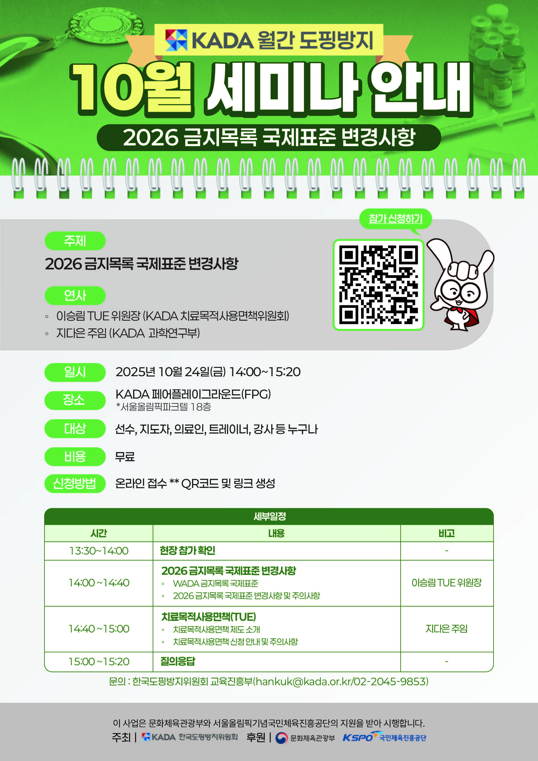(KADA)10월 월간 도핑방지 세미나 '2026 금지목록 국제표준 변경사항' 개최 안내