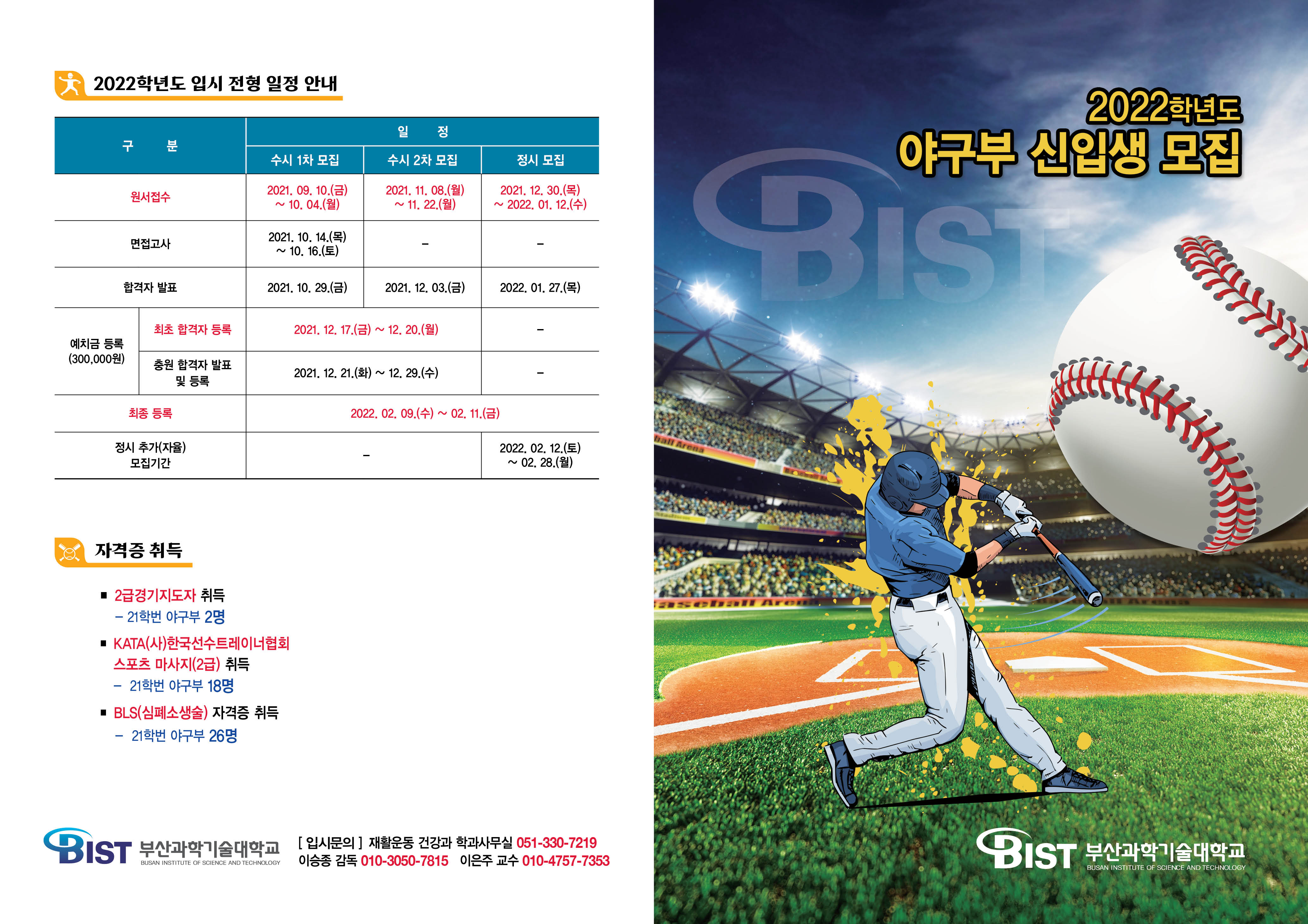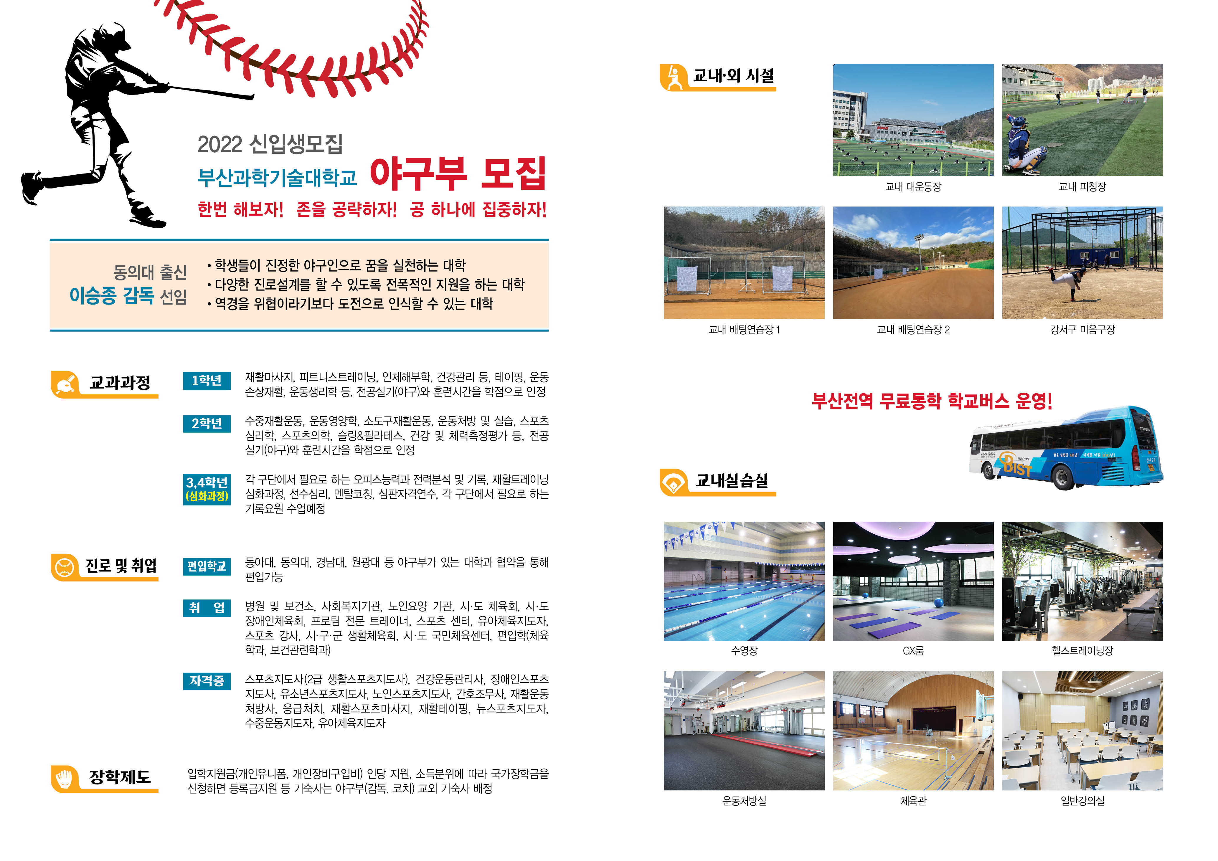 *** 2022년 부산과학기술대학 야구부 신입생모집(수시1차, 수시2차, 정시)