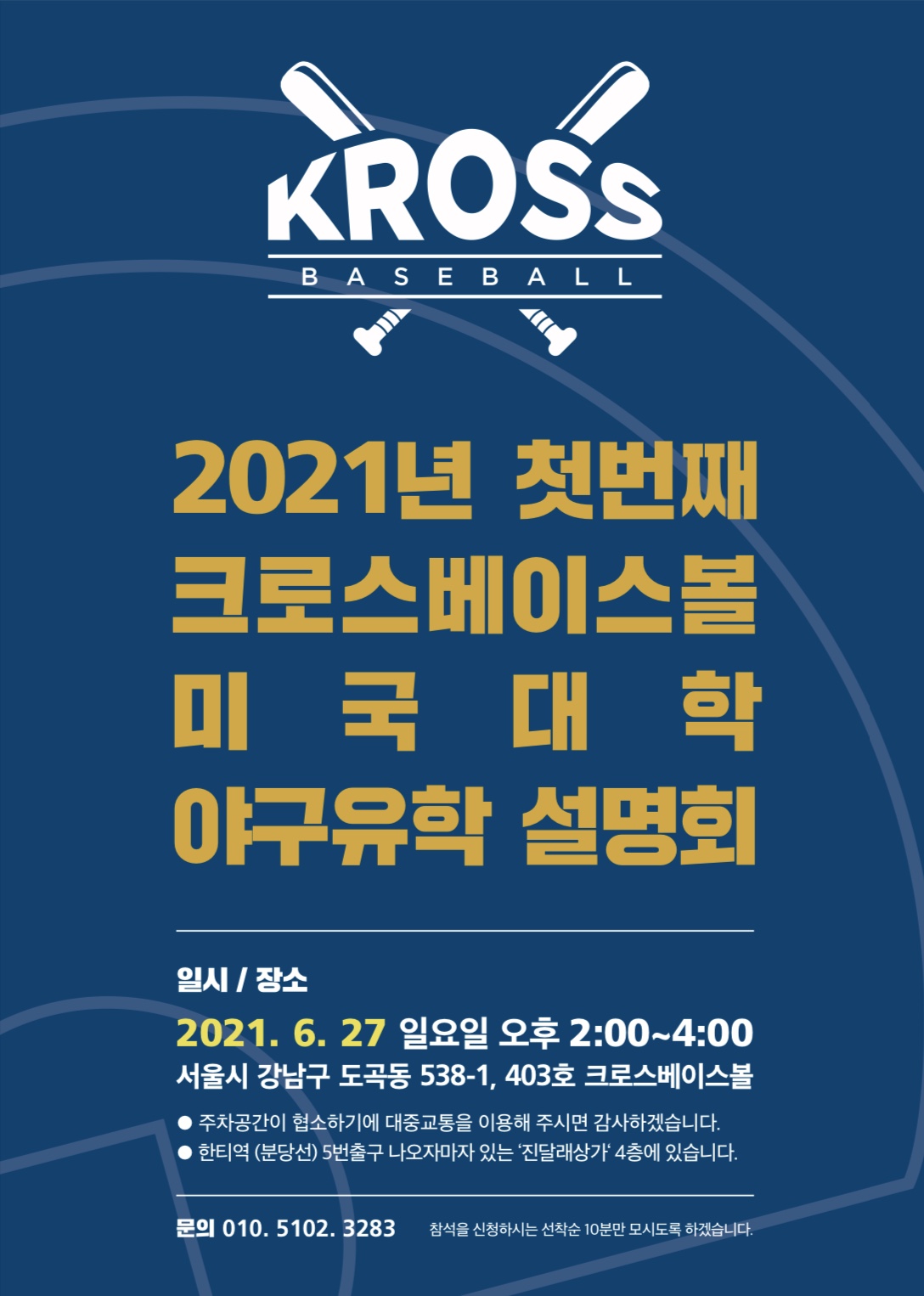 #미국대학야구유학 #미국야구 #크로스베이스볼 #2021년첫번째설명회 #선착순10분만모십니다