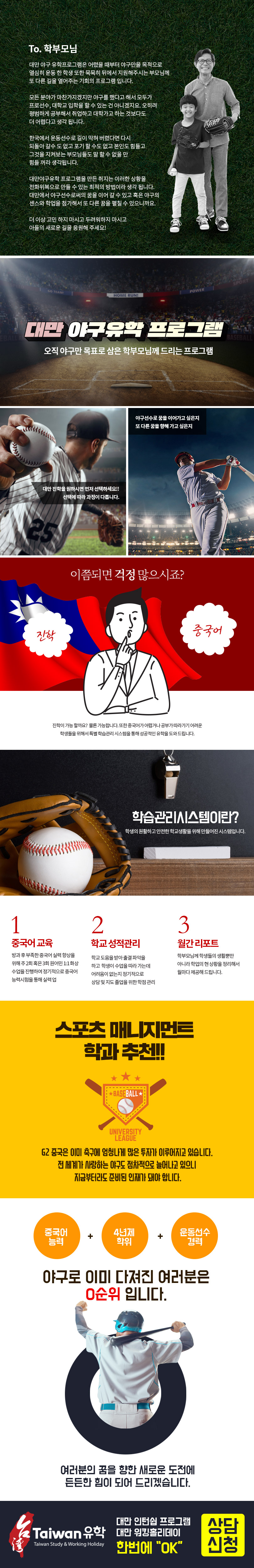 2019년도 상반기 대만 야구 유학 프로그램 참가 학생 모집