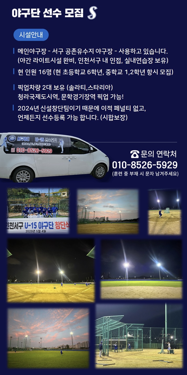 인천 서구BC U-15야구단 선수모집