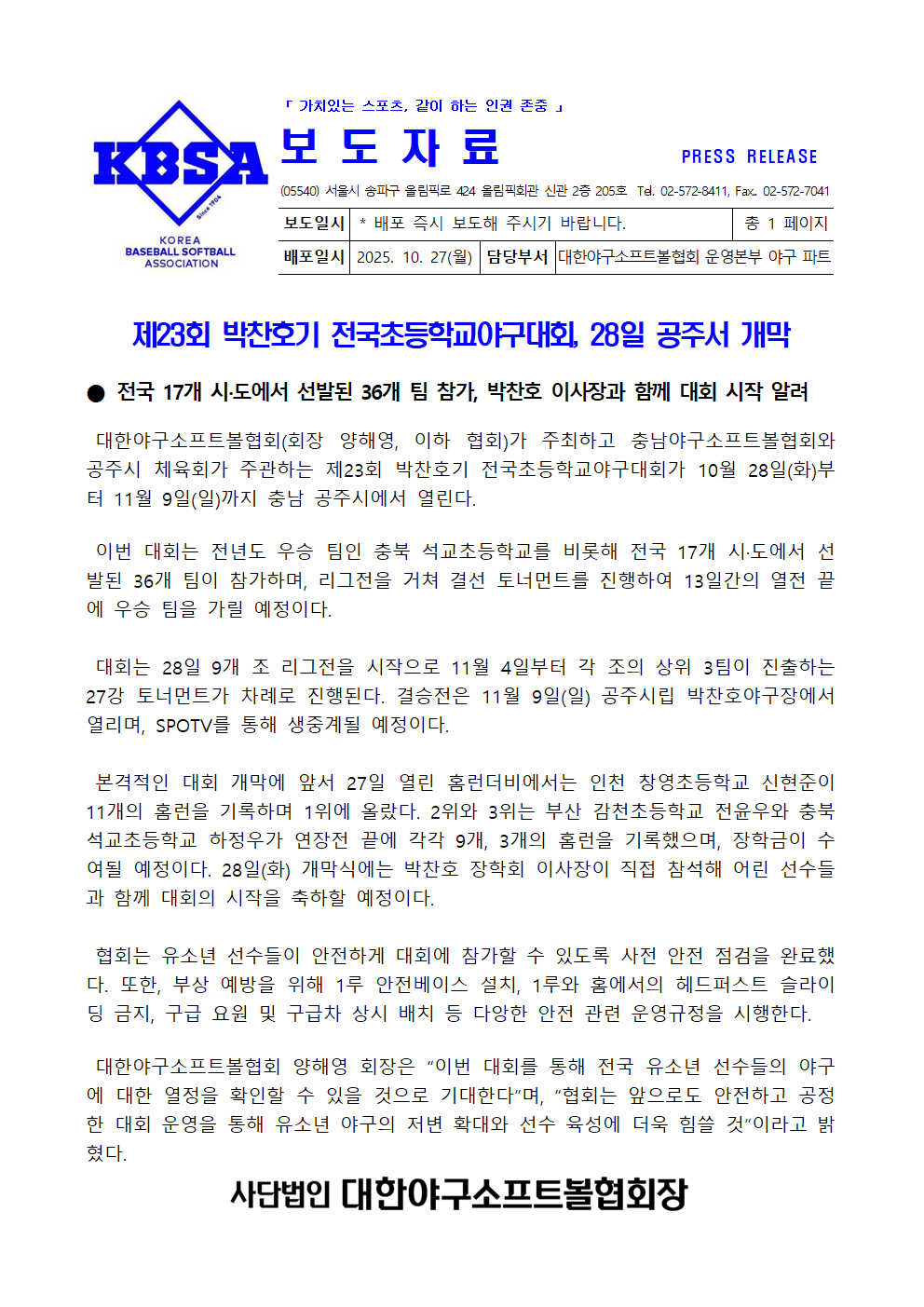 (보도자료) 제23회 박찬호기 전국초등학교야구대회, 28일 공주서 개막001.png